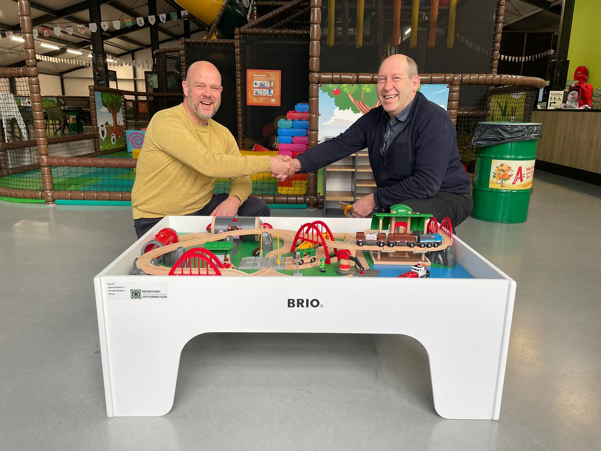 De speelmogelijkheden in de Avonturenschuur zijn sinds deze week weer verder uitgebreid. Voor de kleintjes is er nu een prachtige BRIO-speeltafel met houten treinen. Kinderen vanaf 2 á 3 jaar gaan hier helemaal op in hun spel. Er zijn verschillende treinen, bruggen, tunnels, een station en nog veel meer. Ook is er een boot die je zelf kunt laden en lossen met een echte containerkraan. Het speelplezier is eindeloos. De nieuwe speeltafel is beschikbaar gesteld door Nienoord Spoorwegen. Afgelopen week was de officiële overdracht.